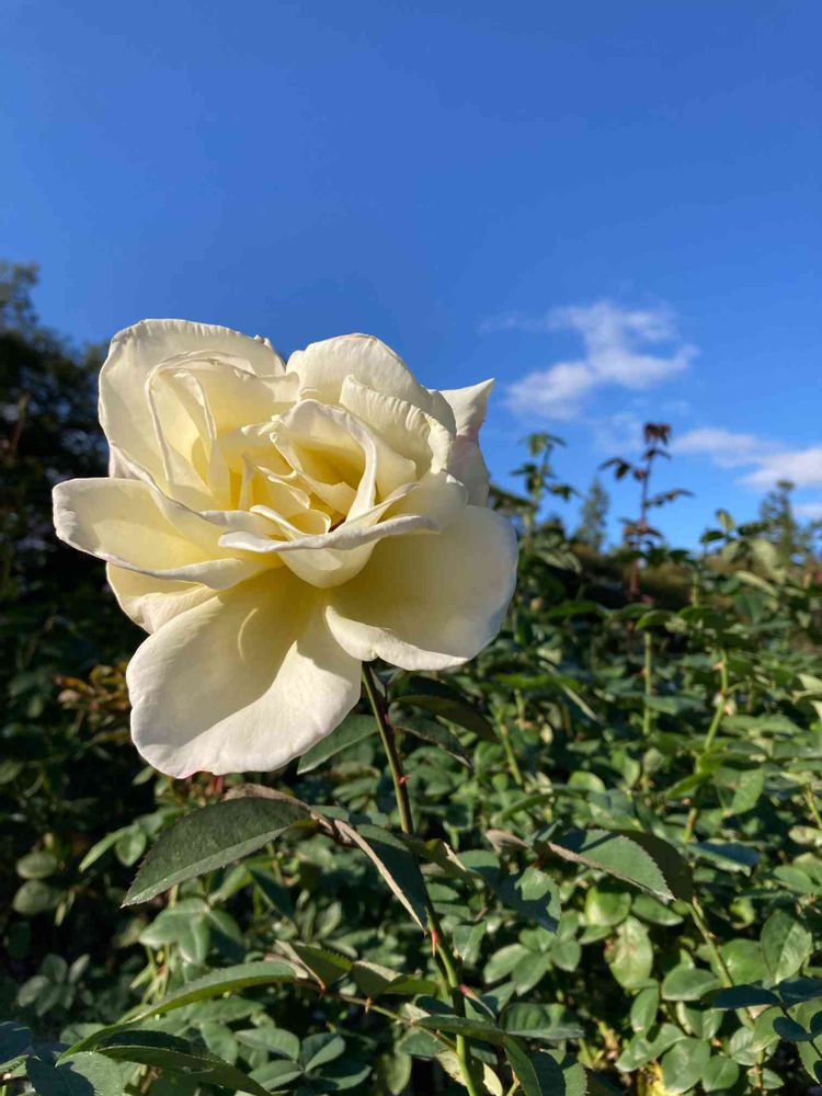 たった一輪の白い薔薇も青空で映えているでしょう🤗