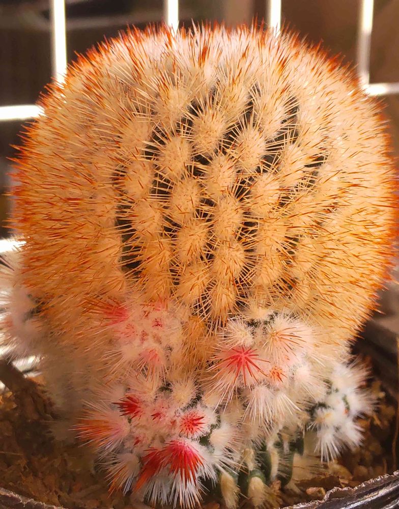 窓の掃除中に目に飛び込んで来たオレンジの元気玉🟠マミラリア・猩々丸さん😻🧡🤍❤️