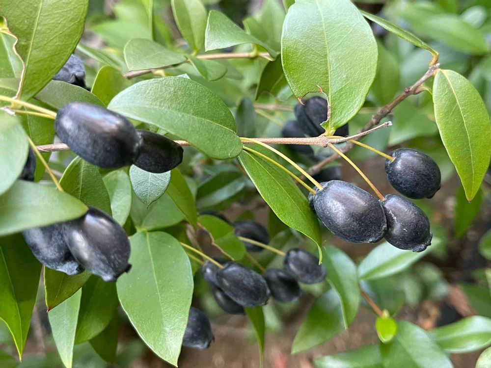 その時は何の花か調べもしないでいましたが、この黒オリーブみたいなブルーベリーみたいな実を見てギンバイカだと知りました。