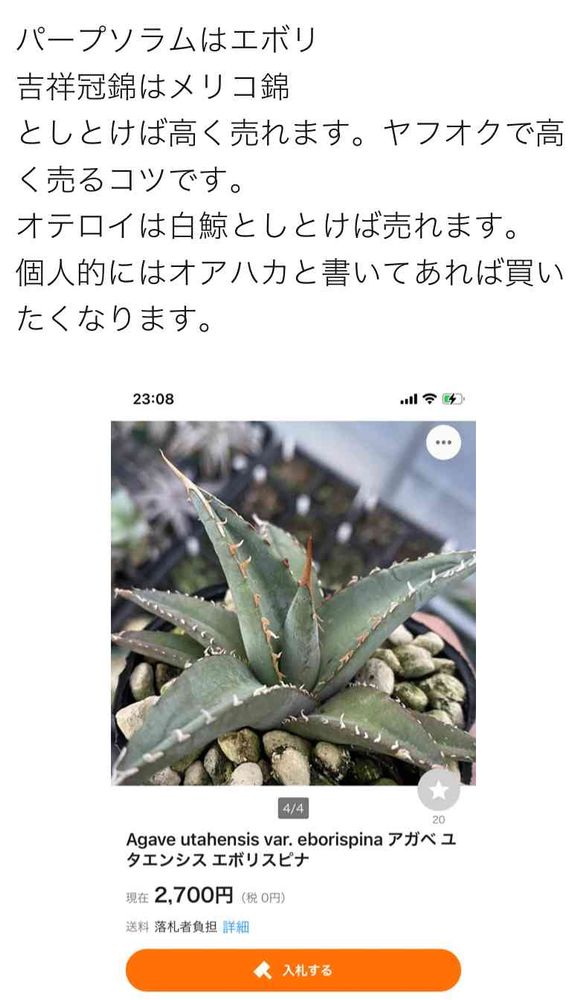 分かってて騙して売ってるから厄介ですよね。コツじゃなくて詐欺ですわ。エボリスピナこの値段だったらアガベ初心者ならだまされそう