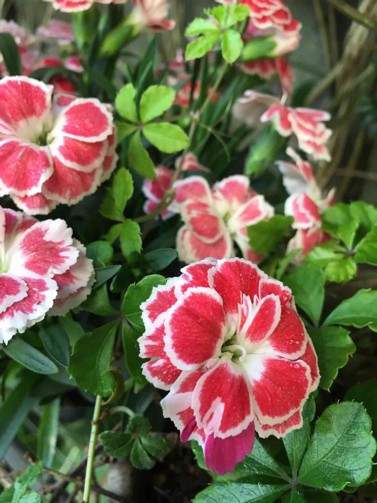 赤と白のカーネーション、シュガーバインは元気に増殖、成長中です🌿
