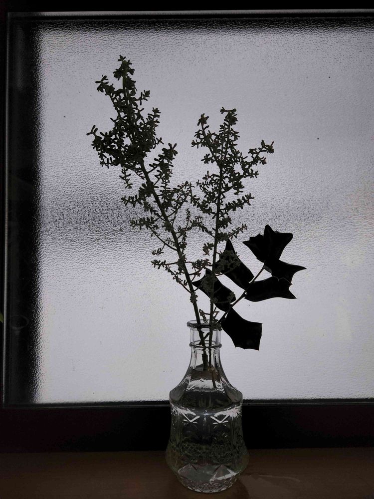 庭のヤバネヒイラギモチをガラス花瓶に⋆⸜🖤⸝⋆