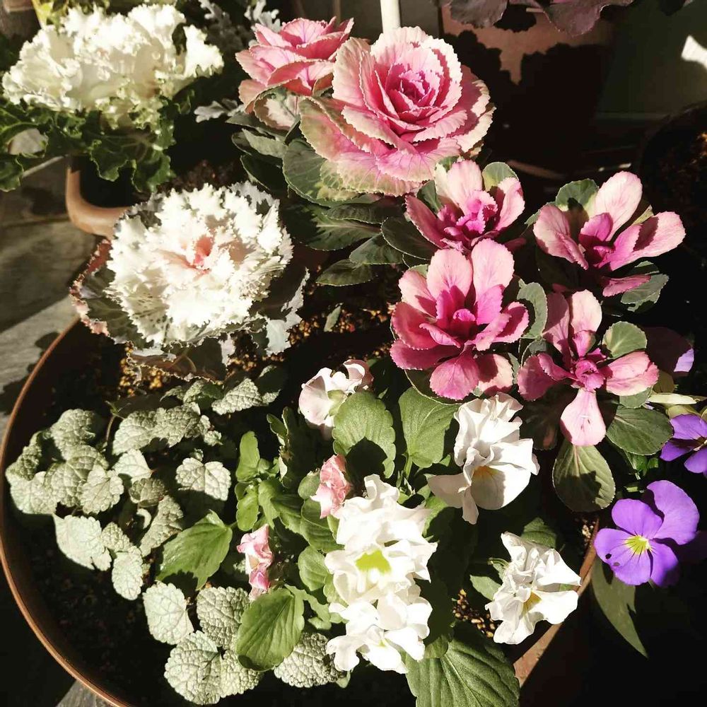ハボタンとパンジーの寄植え。