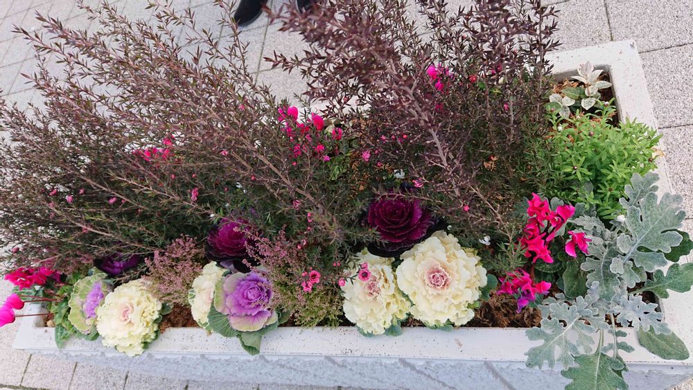 お出かけ先,ハボタン,寄せ植え正月バージョンの投稿画像