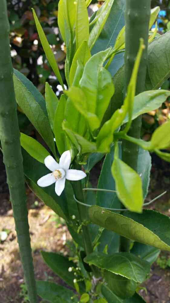 去年植えた、温州みかんの木に始めて花が!ミカンの花始めてみた🎵かわいーなぁ~❤