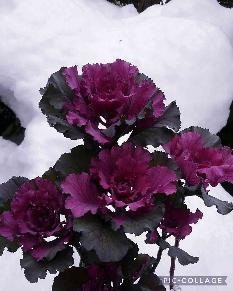 葉牡丹の色がシックで、雪の白さにとてもマッチして綺麗です😌💓