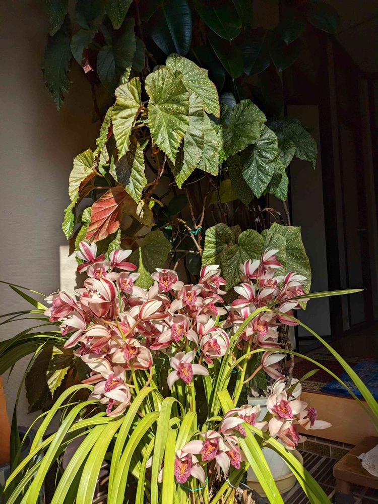 玄関の\(^o^)/先輩木立ベゴニアやゴムの木と共に🎉