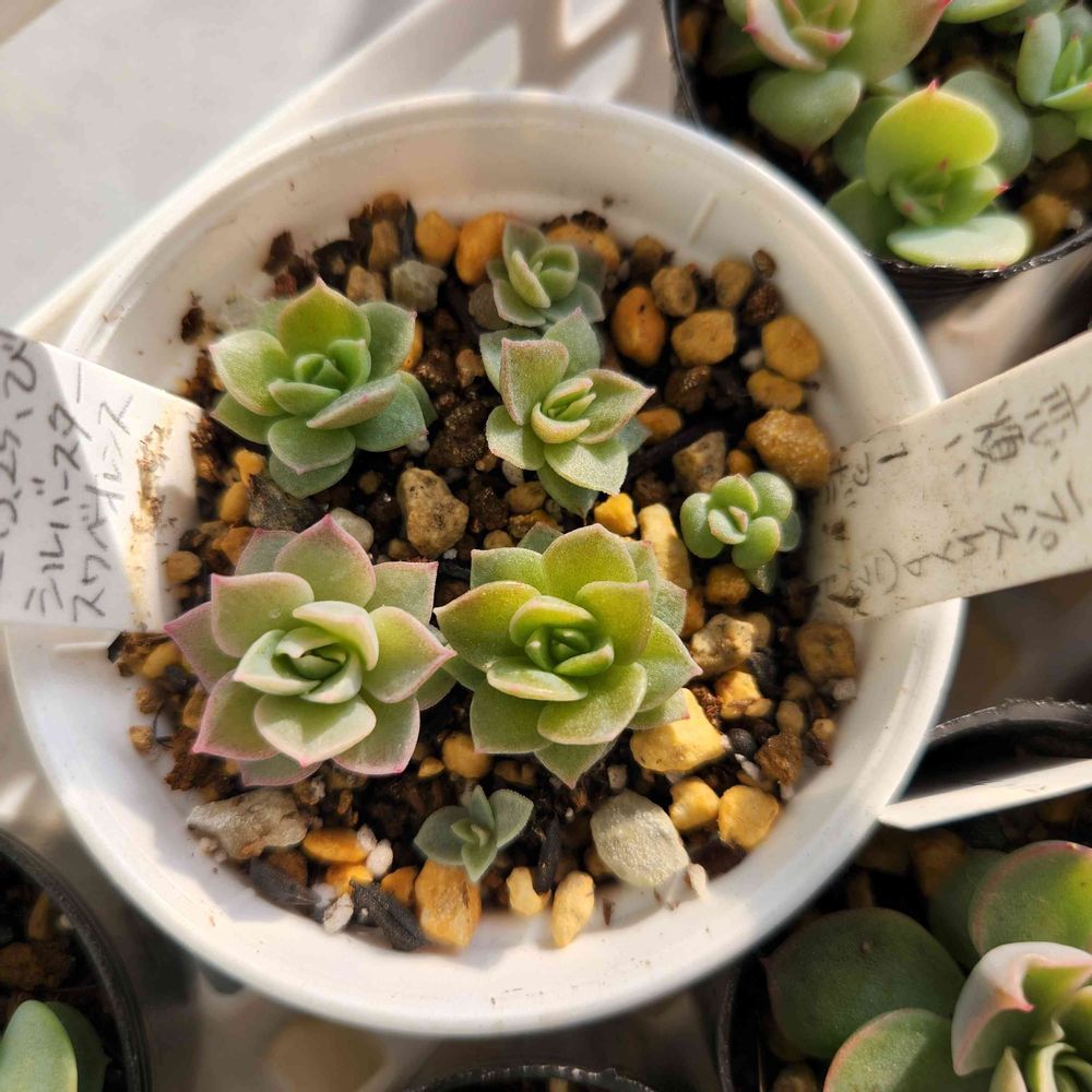 今年わたしはスワベさんの花がいっぱい咲いたけど、なんかちょっと他のエケベリア の花達と形が違ったから、どの辺をどんな風にチョメれば良いかよくわからんだんよねー(笑)😅