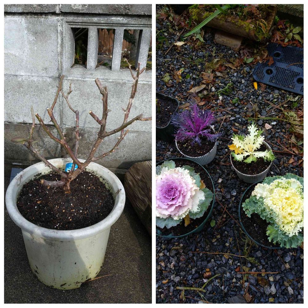 1週間前に買った、葉牡丹やっと植えました。😅😅