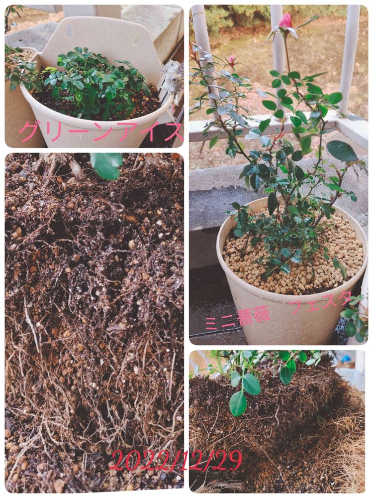 グリーンアイスはゆったりと。フェスタは2株をほぼ同じサイズに植え替えなので、ギュウギュウ🤣 半円のハンギングバスケットから、深めの丸い6号鉢へ変わったので下へ根を伸ばすスペースはできました✨