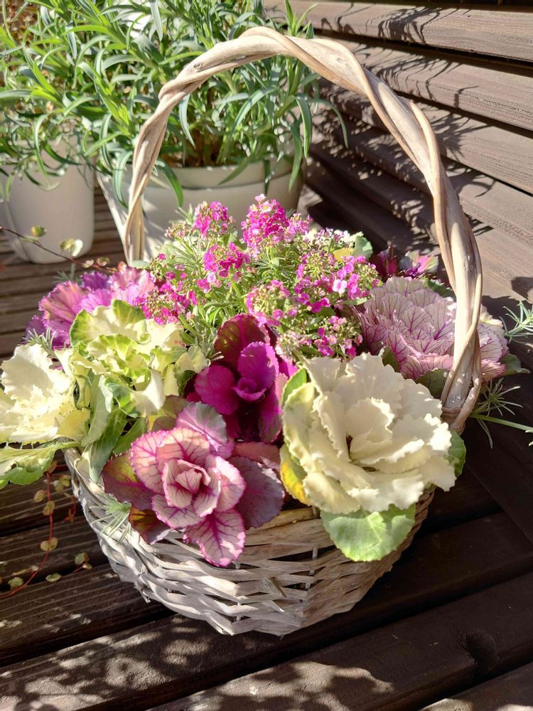 ちっちゃい葉牡丹だからコンパクトサイズな寄植えが出来ました😊