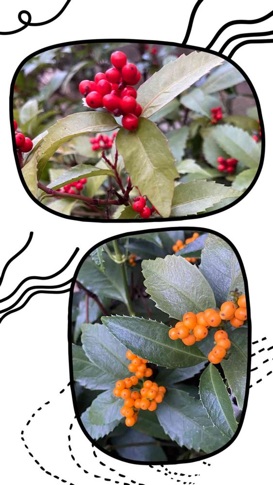 お花のないこの時期、庭を明るくしてくれています💛🍒❤️
