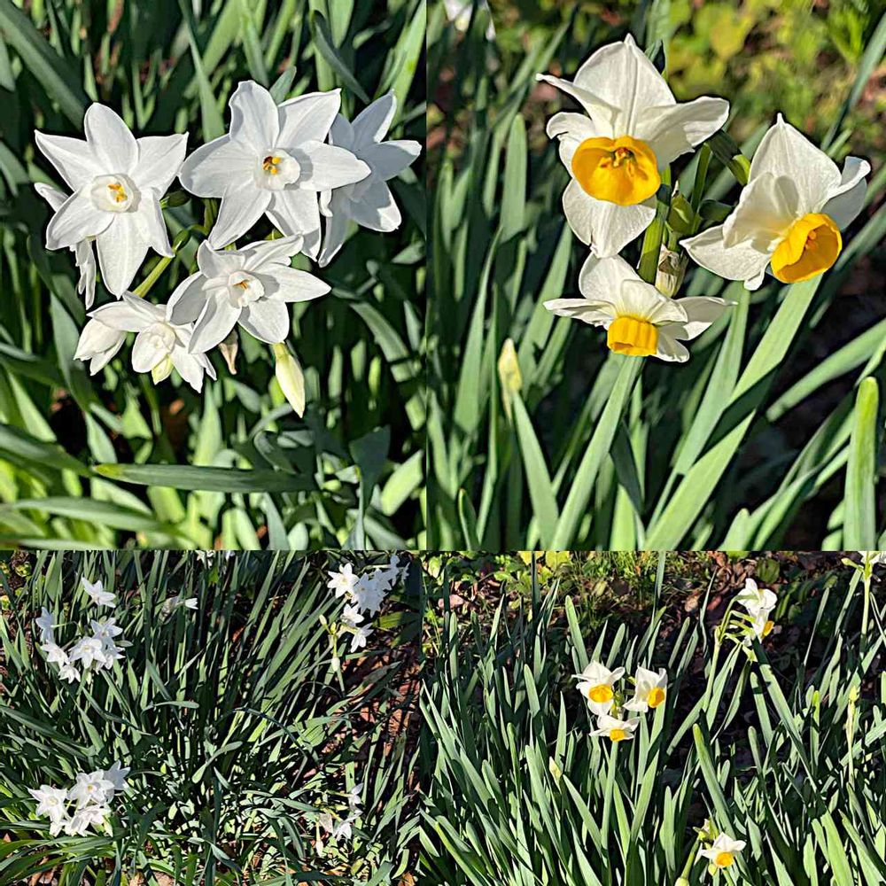 ペーパーホワイト(白花水仙),ニホンズイセン(日本水仙),/呼応するかの様に咲くや、2つの房咲き白い花/の投稿画像