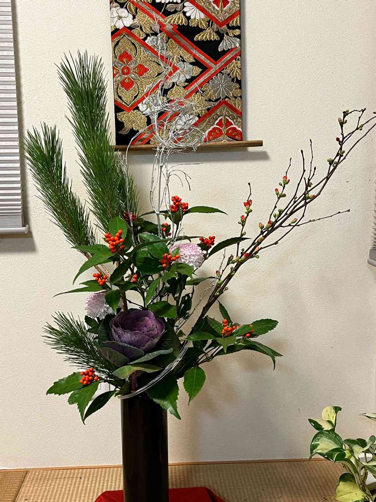 なんせ一本1500円もした千両、失敗できない😅のでこれからYouTubeの生花を参考に手直し予定です。