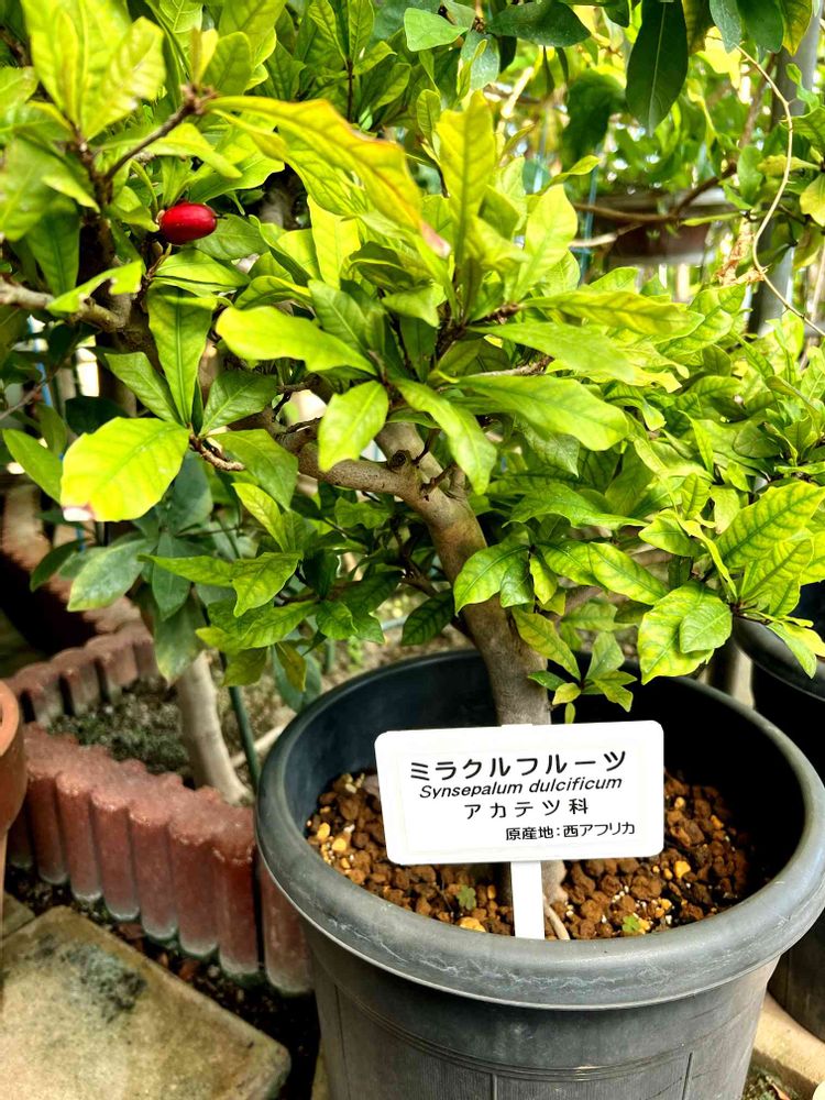 ミラクルフルーツの実を食べた後に酸っぱいものを食べると、甘く感じるという不思議な性質が有ります。