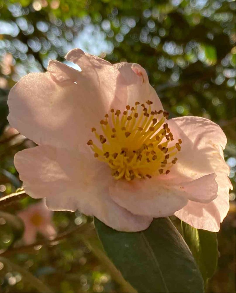 木漏れ日を浴びた山茶花…🌸🌿☀️