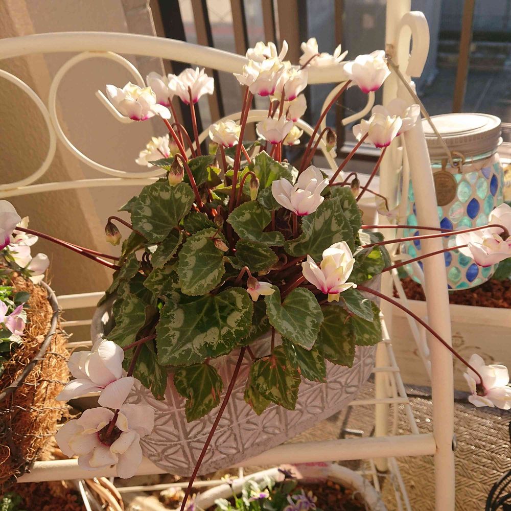 バルコニー/ベランダ,ガーデンシクラメン グリーンティアラ,ガーデニングの投稿画像