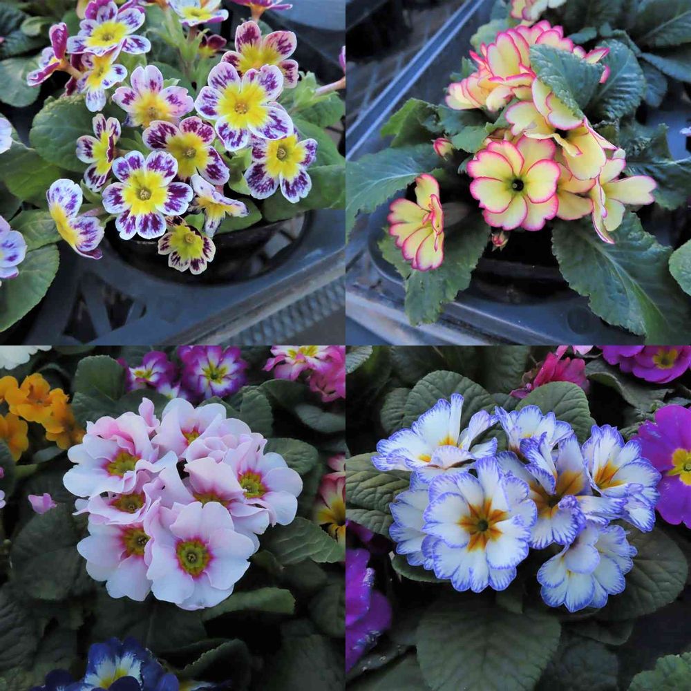 いろいろな花姿の「プリムラ・ジュリアン」。 左上のお花が珍しいなと。パチリ・・パチリ