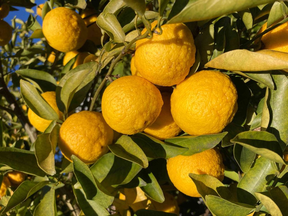似て非なる柑橘類 ご近所さんのお庭に4本並んで実ってます。
