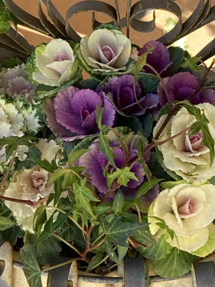 ハボタンの寄せ植え、色合いが素敵ですね😊🎶