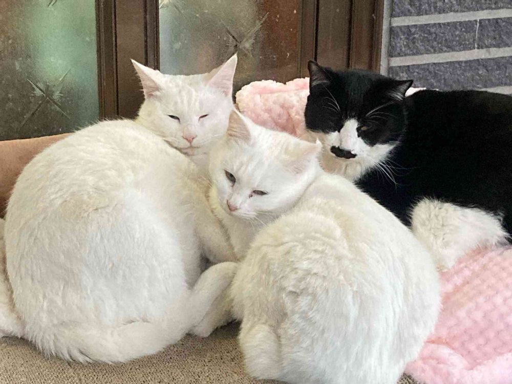 寒くてもご飯の時間の30分前には玄関に集合するシロちゃん一家🍚🐈🐈⬛🐈✨