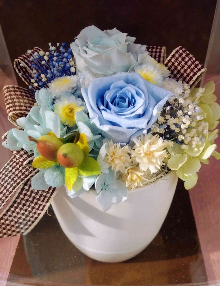 一気見しましたー、寄せ植えもアレンジメントもステキ、青いバラ、希少ですね✨