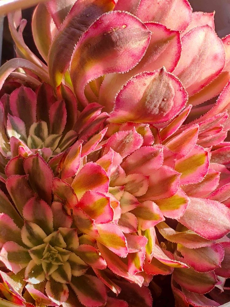 今年最後の日を飾ってくれるのは 華やかな アエオニウム・赤銅壺白錦さんに致しました😻💗🤍💛💚