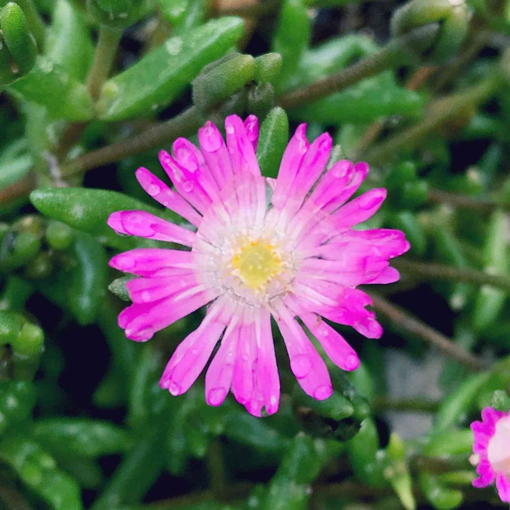 ミックスシードを蒔いた場所に生えてたマツバギク🌼ショッキングピンクが華やかです✨