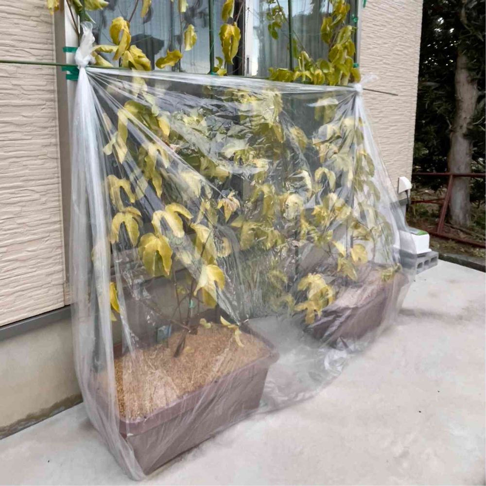 前回は倉庫に移動させましたが、プランターを大きくしてしまっていて重いから、ここでの冬越しにチャレンジ中。