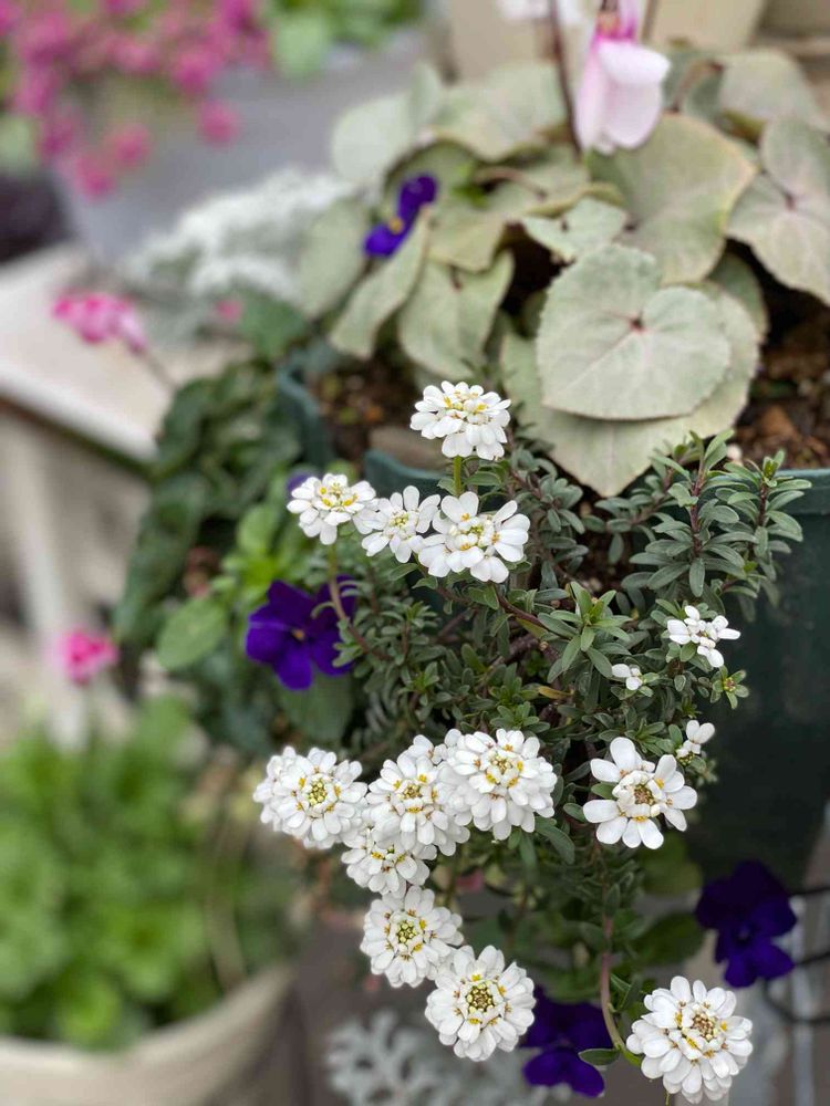 イベリスの白さがけっこう好きで。でも側面に植えちゃったね😆