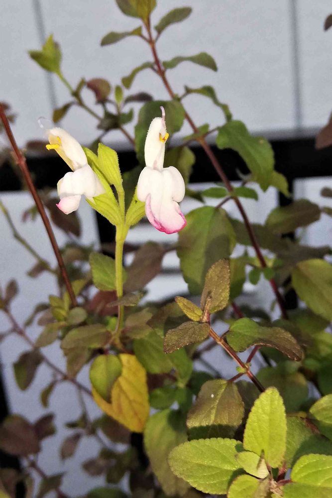 サルビア・ミクロフィラの白ベースにピンクの覆輪をもつ花 2022-12-23