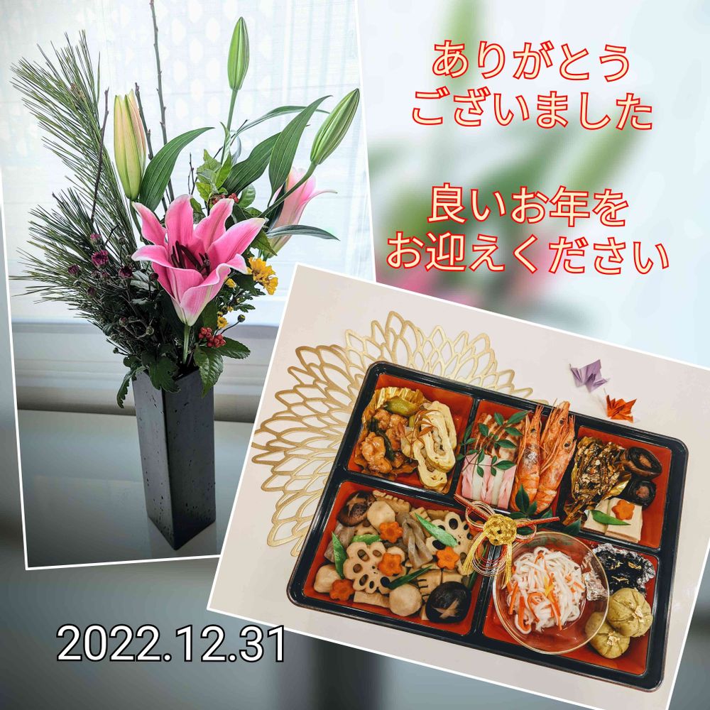仏様用のお花と、今日作ったおせちですෆ⃨