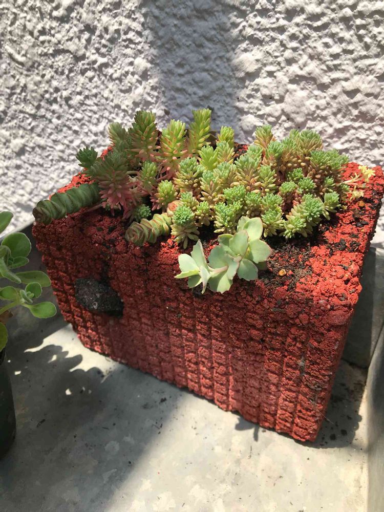 ずっと前に買って放置していた家型のオブジェに多肉を植えました。セメントに麦わらを混ぜてこういう質感になってるらしい。屋根部分の一部が少し凹んでいて、そこに植えられると言われていたのですが凄い浅いんで放置していたもの。とりあえずセダムとか強いものを。見えないところに子持ち蓮華とかセンペルも挿し木。落ち着くまでこの角度で育ててみる。