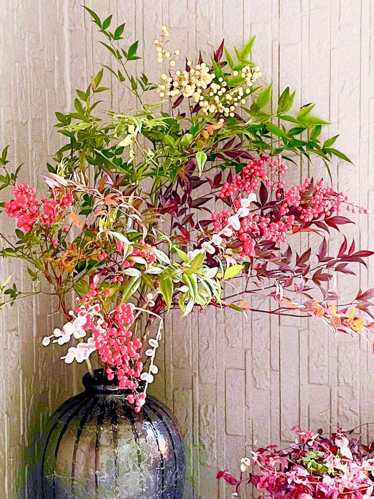 南天❤🤍の迫力✨が渋〜い壺🏺が締めてますね ・:*:・(*˘︶˘*).。*♡・:*:・
