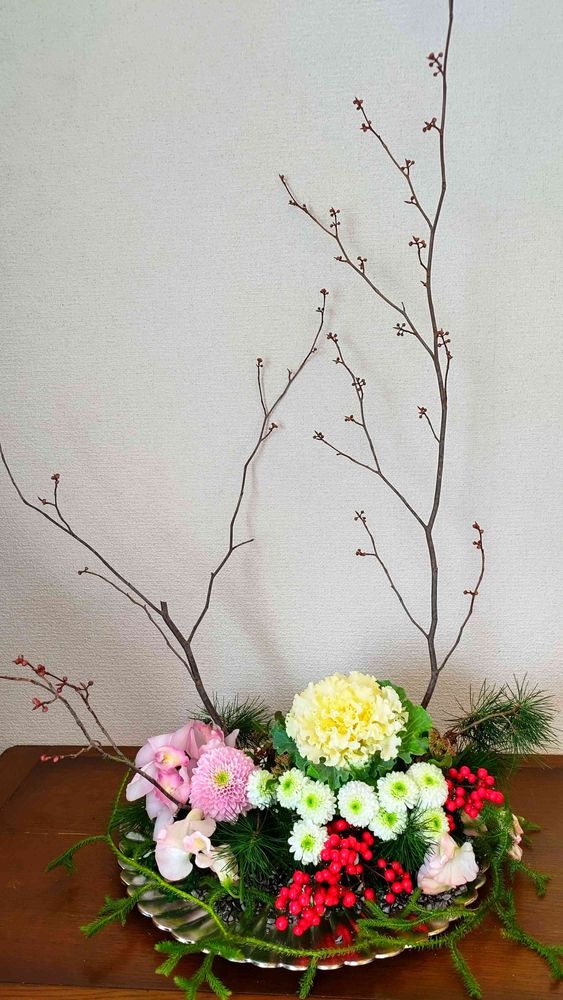 こちらはアレンジメント教室のお正月花作品です👍💕