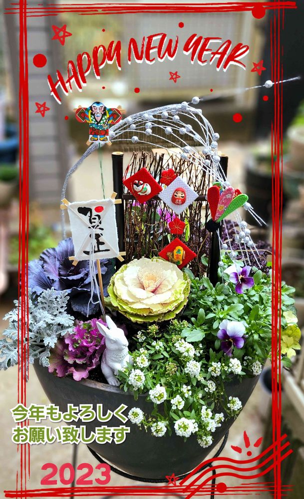 これは元々は、お正月用に作っておいた寄せ植えだったので和のイメージにしていました😄