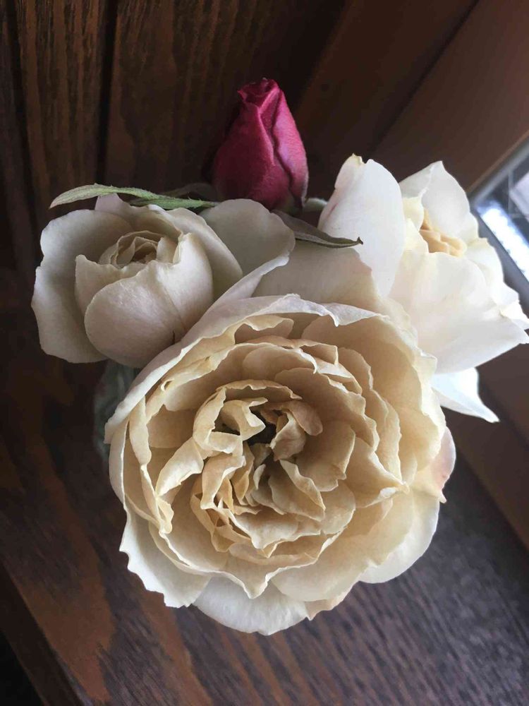 カットしてあった白薔薇ファビュラスがいい感じに開いたので🤍