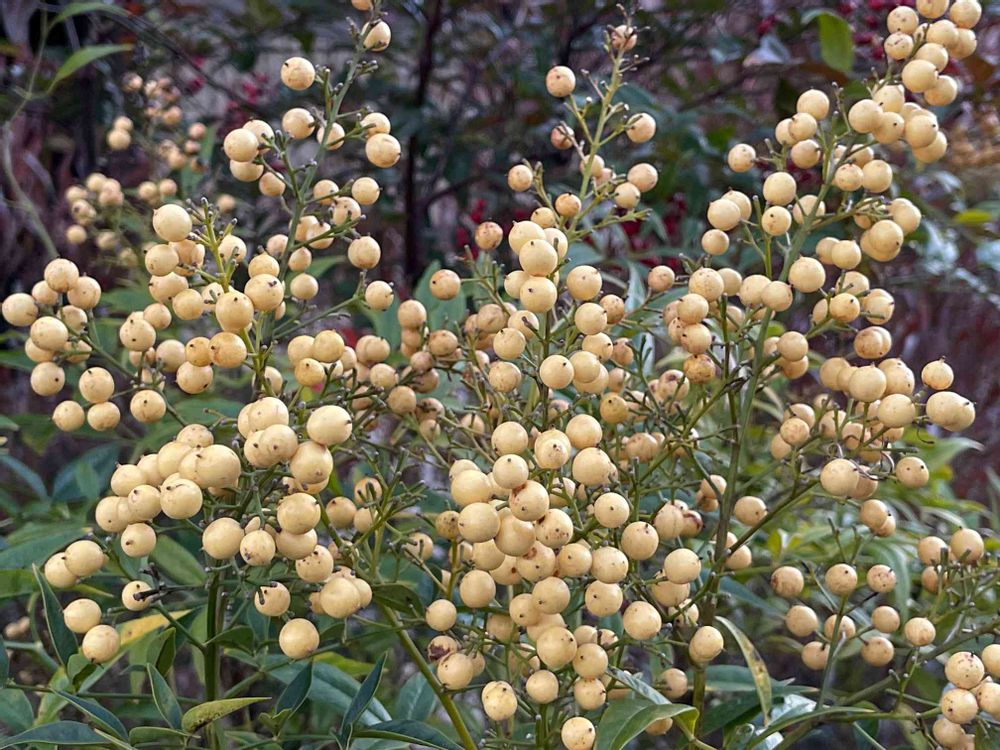 白い南天❗ 家の方では余り見掛けませんよ🎶 紅白揃ってさぞかし綺麗でしょうね✨ 赤い実の方が目立つから、鳥🐦️が食べてしまうのかなぁ~~(・_・?)