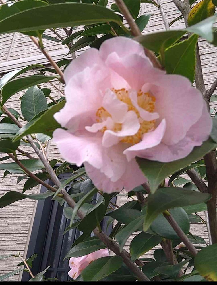 今日のお花ツバキ。匂い椿、仄かな香りがします。