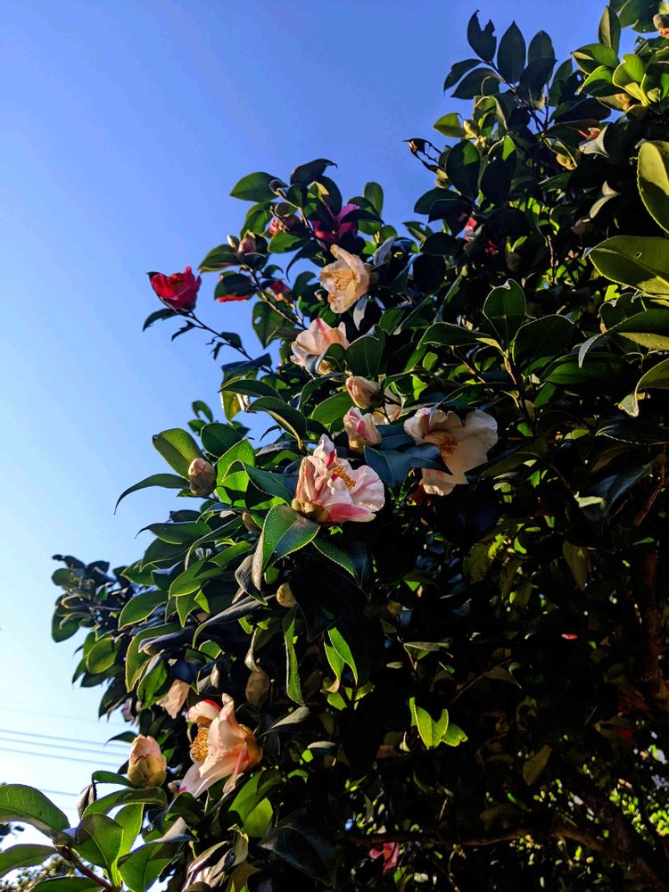 おりづるさんのお出かけ先,三色咲き分け椿,今日のお花の投稿画像