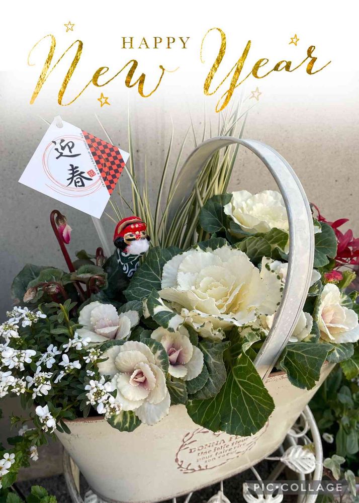 葉牡丹が華やかなお正月らしい寄せ植えですねー💓💓