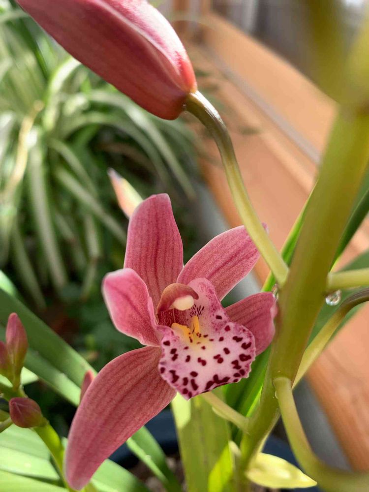 先日のシンビジュームの最初の一個が咲きました♪ お正月に咲くなんて幸先いい感じ。
