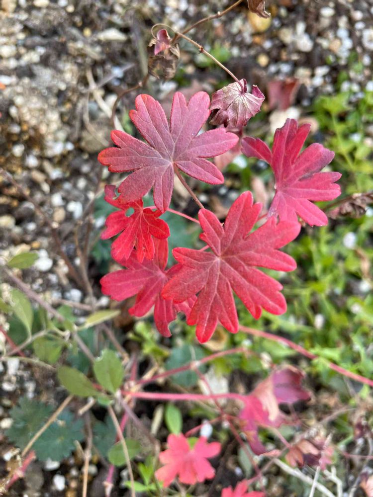 昨年7月にお迎えした曙フウロ。綺麗に紅葉してくれてます🥰彩りの減ったお庭でいい仕事してます✨