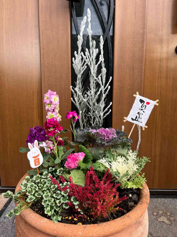お正月の寄せ植えならぬ、寄せ集め植えになってしまいましたが、葉牡丹など入れてそれらしく植えてみました😅