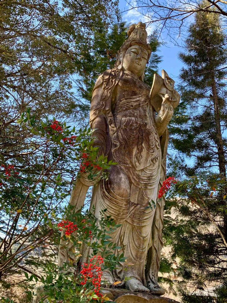 優しい観音様の表情に南天の美しい実が、なんとも言えぬ安らかな気持ちになりますね😌