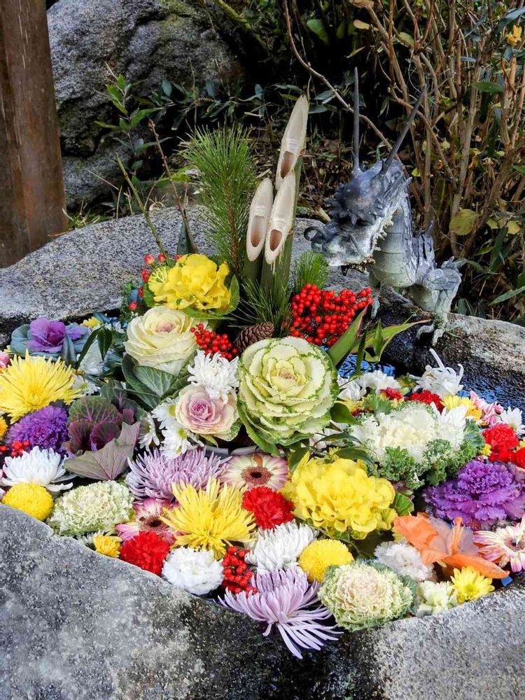 🌼🏵️💮花手水💮🏵️🌼と吐水龍