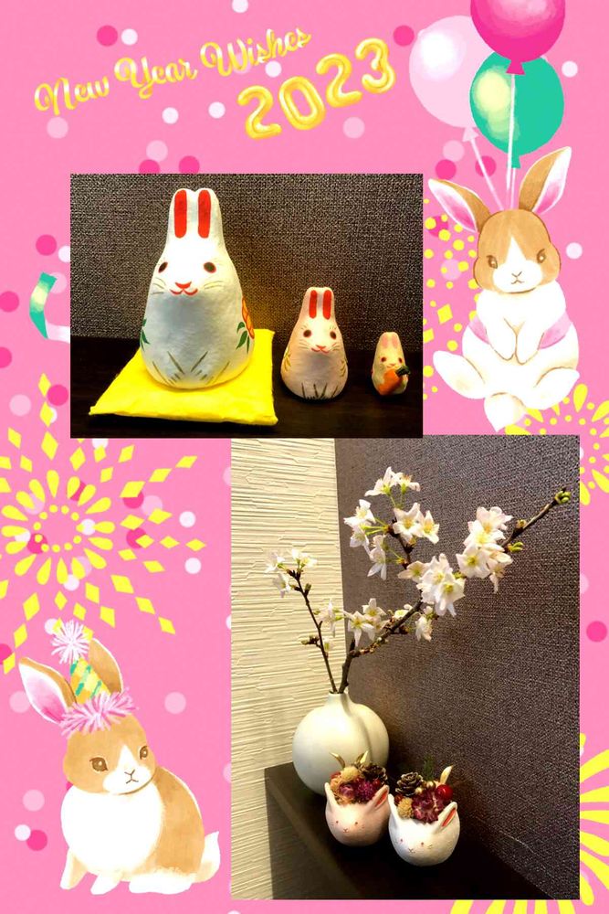下の紅白うさぎさん、造花ですが可愛いです💕