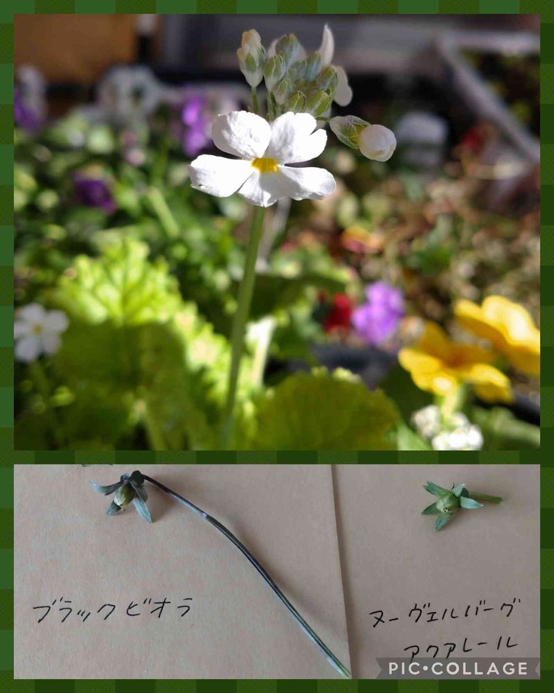 こぼれ種ウィンティーが咲きだしました🌼*・でも色は白にしか見えず😱結局親がどの株(サクラ🌸、ピーチ🍑、ライムグリーン🍏)のどれかまだわかりません💦
