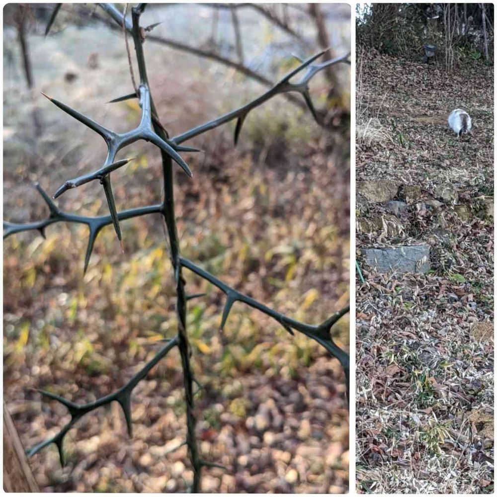 カラタチの実は美味しく無いらしく こんな鋭い棘があるのではこの先もっと大きくなったら困りそう… 今年お花を見たら切ろうかと思案しています