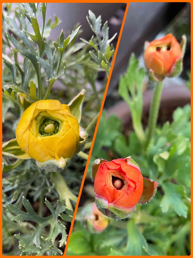 ラナンキュラスのつぼみが膨らんで色づいてきました♬
